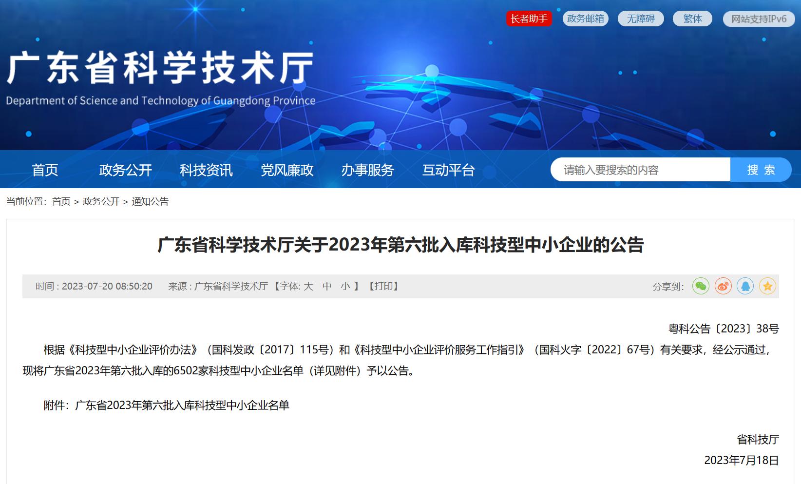 2023年7月20日,广东省科技厅发布“广东省2023年第六批入库科技型中小企业名单”,广州励美环保科技有限公司被纳入“广东省科技型中小企业”(国家级)。科技型中小企业是科技部授...